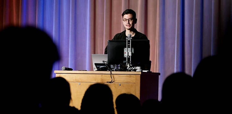 Yamada spoke at the Buckman Center about teamLab’s work environment and the processes they use to assemble exhibitions; he later answered students’ questions during a subsequent Q&A session.