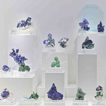 Most of the new additions hail from the Milpillas Mine of Sonora, Mexico, offering unique insight into the geology of a copper mine. The mine produced some of the best specimens of azurite and malachite in the world before operations were indefinitely suspended in 2020 after 13 years of operation.